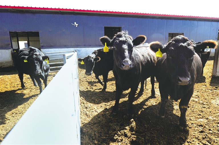 入冬后,行駛在黑石鎮(zhèn),道路兩旁的田地里莊稼已收割完畢。黑石鎮(zhèn)副鎮(zhèn)長蘇禮鑫打趣道:“現(xiàn)在這個時節(jié),養(yǎng)殖業(yè)有看頭!痹捯魟偮洌囕v就停在了和平村肉牛養(yǎng)殖場門口。