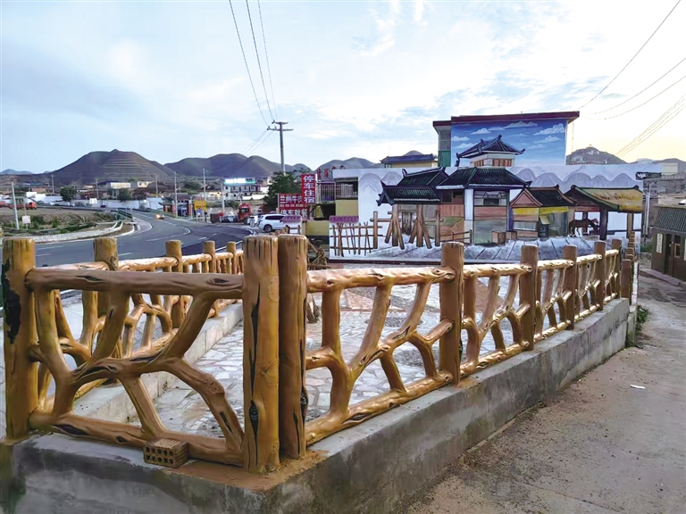 在水阜村三岔路口處,一處“車馬驛站”的立體彩繪吸引了記者的目光。水阜鎮(zhèn)副鎮(zhèn)長桂政睿介紹,國道109沿線和水阜村村口交接處是一個丁字路口,過往車輛和人流量較大,之前這里是廢舊院落,是個整治難點(diǎn)。今年6月,通過圈出綠化帶,建仿木圍欄,房屋外立面進(jìn)行彩繪等方式將這個三岔路口打造成了“車馬驛站”主題微景觀,不但省去了拆除的“大動作”,還讓這里成為了水阜村歷史文化展示的窗口。