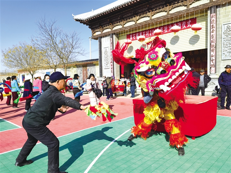 “每年我都會(huì)參加村上組織的社火,我們的扭秧歌都是自己編排花樣和走隊(duì)形。雖然天氣寒冷,但是我們堅(jiān)持每天都練習(xí)四個(gè)小時(shí),力爭(zhēng)做到完美,也希望把這濃濃的年味傳遞給每一個(gè)人!焙谑(zhèn)黑石村村民劉明珍樂(lè)呵呵地說(shuō)。