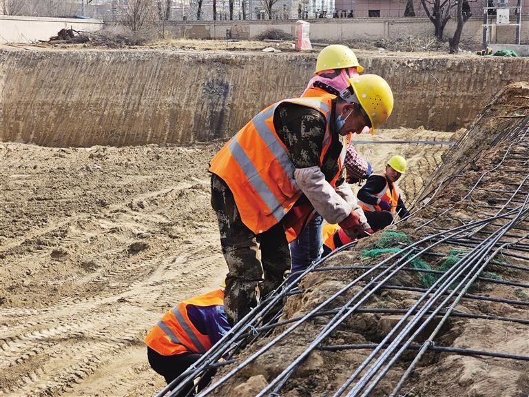 來到紅古區(qū)托育服務(wù)中心建設(shè)項目施工現(xiàn)場,基坑中十余名工人正在進行基坑邊坡支護作業(yè)!拔沂嵌碌讈淼焦さ厣祥_始參與施工的,現(xiàn)在我們幾個人正在進行基坑支護,是技術(shù)活也挺費力氣,工資收入不錯,我干勁也很足。”正在紅古區(qū)托育服務(wù)中心建設(shè)項目工人李勝輝邊捆扎鋼筋邊對記者說。
