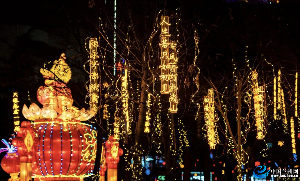 火樹銀花不夜天,花燈璀璨照無眠。夜幕降臨,榆中縣的街道被各式各樣的燈飾裝點得如詩如畫。放眼望去,一盞盞高懸的彩燈與建筑樓宇、景觀長廊的靜態(tài)燈光相互輝映。“落花時節(jié)又逢君”“東風(fēng)弄巧補殘山”……在中心廣場,一條條詩詞燈串燈飾掛在流星雨燈飾裝扮的樹上,流光溢彩。特色的卡通龍年燈飾和新春快樂燈組,營造濃濃的喜慶氛圍,吸引了不少市民拍照打卡。