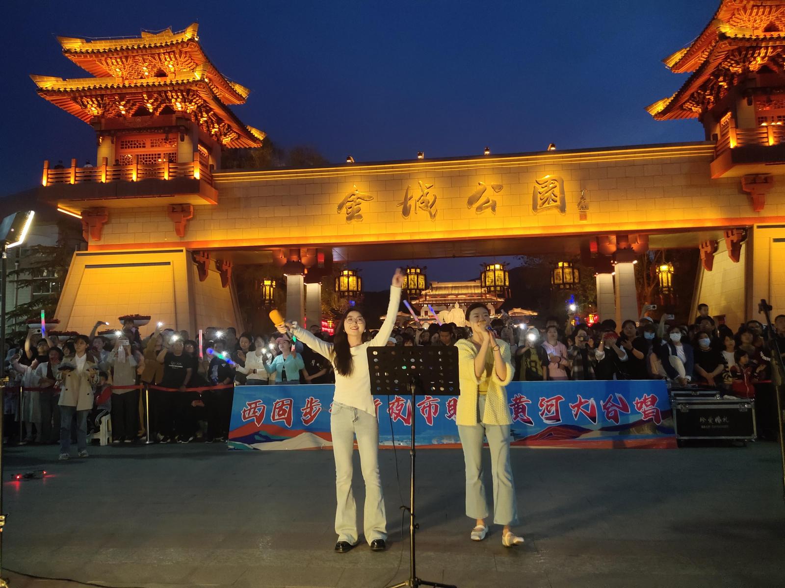 19時(shí)30分,“黃河大合唱”正式開(kāi)始,歌手們輪番上陣,領(lǐng)銜演唱,他們?yōu)楝F(xiàn)場(chǎng)觀眾帶來(lái)了《我和我的祖國(guó)》《稻香》《江南》等膾炙人口的歌曲,一曲曲動(dòng)聽(tīng)的旋律伴隨著千人合唱回蕩在夜空,讓人陶醉!俺懳鞴獭ひ灰(jiàn)如‘固’”大合唱吸引著大批市民游客歡聚,大家隨聲合唱,以聲共情,以情動(dòng)人,全都匯聚在了音樂(lè)的海洋。