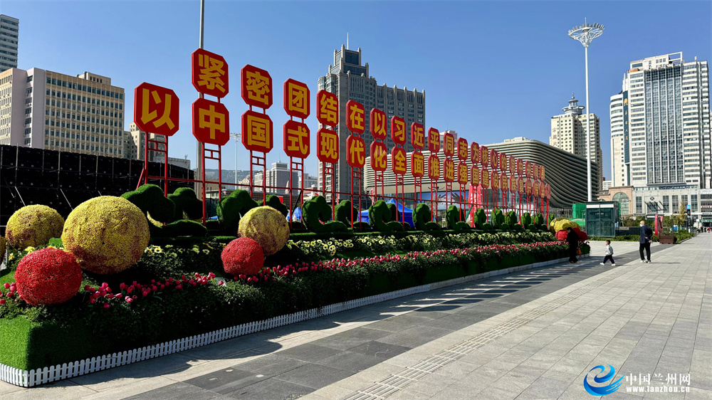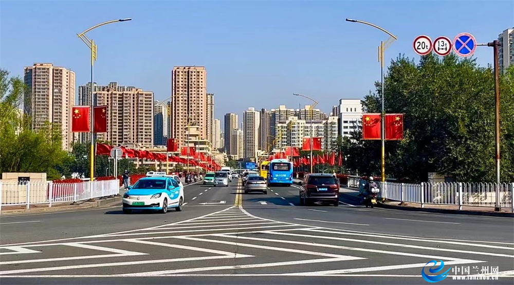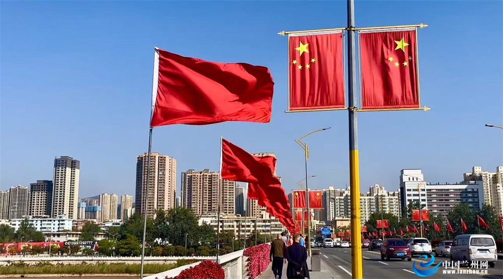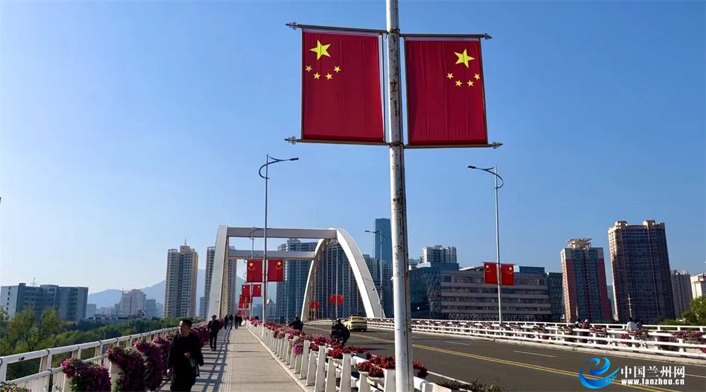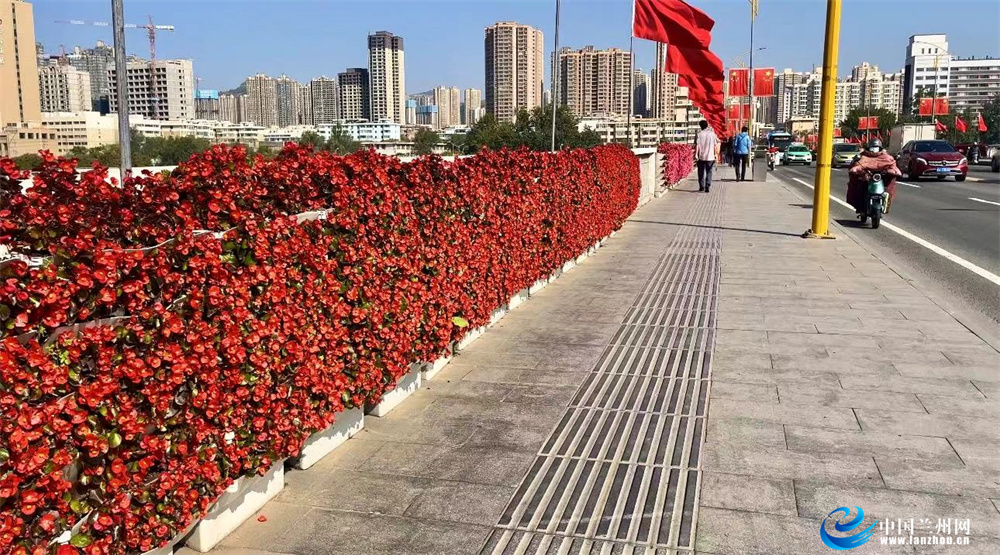 國慶節(jié)在即,蘭州市城區(qū)主干道、廣場、商業(yè)街區(qū)、橋梁等重點區(qū)域及節(jié)點相繼被國旗和鮮花扮靚,空中,一面面國旗迎風招展;地上,一盆盆鮮花競相綻放,鮮艷的中國紅營造出濃濃的喜慶氛圍。