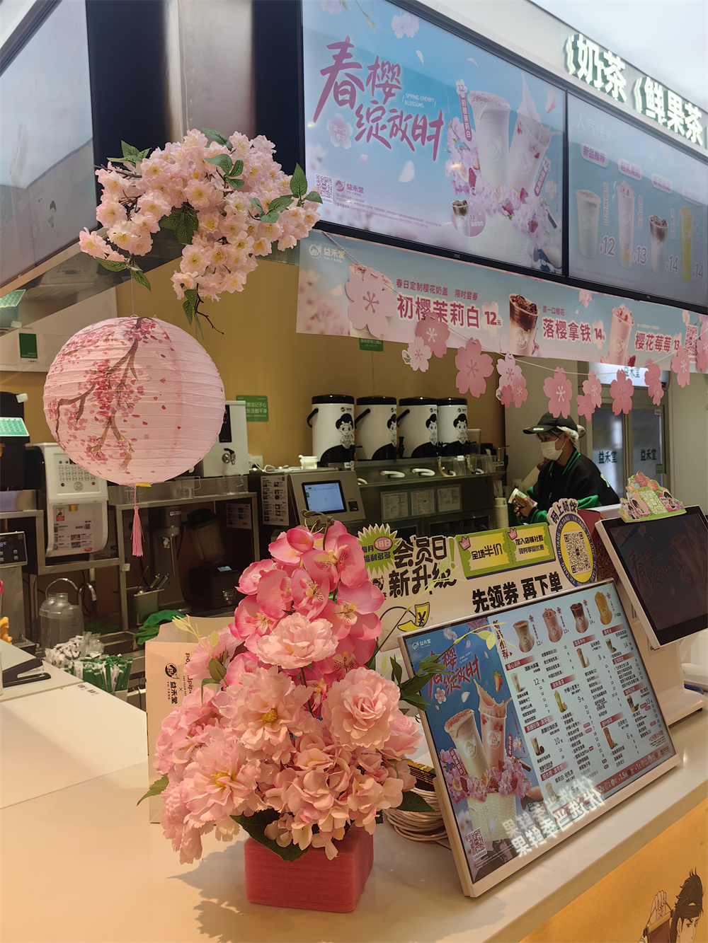 玫瑰、櫻花爭相“綻放”茶飲店