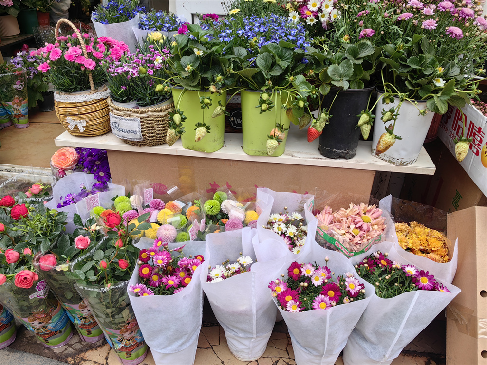 年宵花銷售熱潮剛過,鮮花市場又迎來消費高峰。相較于年前的“大紅大紫”,初春的花市更加絢麗多彩。3月6日,記者走訪芳草園花卉市場、西部花市,一進門各種鮮花的香味撲鼻而來,一派花團錦簇、春意爛漫的景象呈現(xiàn)在眼前。每家花店的花架上都擺滿了各種鮮花,郁金香、洋牡丹、繡球花等,還有可愛的多肉小盆栽、創(chuàng)意花束,品種繁多讓人應(yīng)接不暇。不少市民饒有興致地穿梭在各種鮮花之中,駐足觀賞,選購自己中意的花卉盆景。