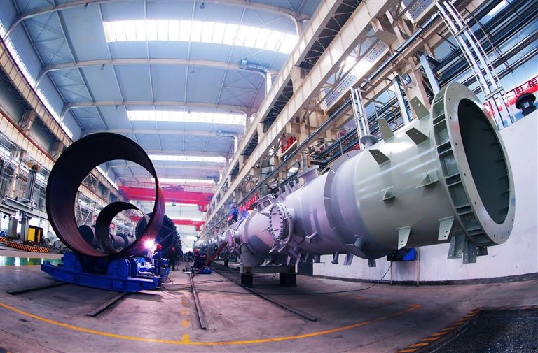 蘭石集團(tuán)大型煤化工設(shè)備制造現(xiàn)場(chǎng)