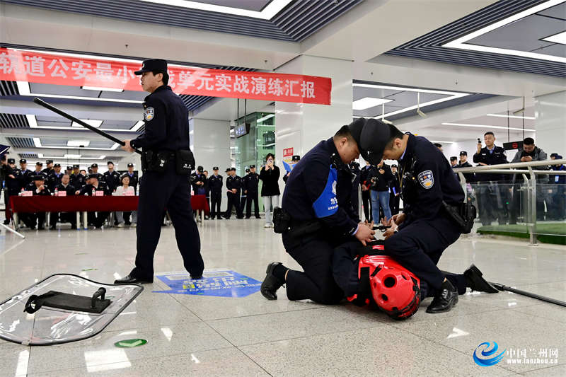 “各組注意,盾牌手、警棍手和鋼叉手立即進(jìn)入戰(zhàn)斗姿態(tài)。其余人員疏散人群,引導(dǎo)乘客快速撤離至安全區(qū)域。”隨著一道道口令下達(dá),參訓(xùn)隊(duì)員現(xiàn)場(chǎng)實(shí)景演練刀斧砍殺處置、疑似爆炸物品處置、大客流造成人員傷亡應(yīng)對(duì)處置、醉酒乘客擾亂公共秩序處置、不配合安檢沖卡處置、巡邏盤查中襲警人員處置、個(gè)人極端案事件處置、打橫幅擾亂站內(nèi)秩序行為處置等八個(gè)科目,“拉警戒,維護(hù)現(xiàn)場(chǎng)秩序。架圍擋,遮擋現(xiàn)場(chǎng),防止引起恐慌!爆F(xiàn)場(chǎng)公安、站務(wù)、保安、保潔等多元治安力量緊密配合、精誠(chéng)協(xié)作,充分調(diào)動(dòng)站內(nèi)治安力量。